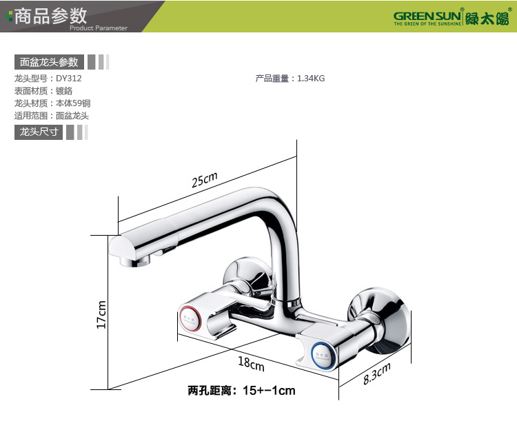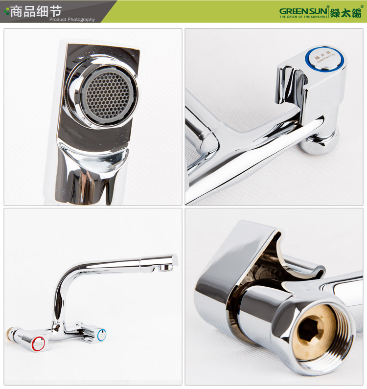 绿太阳|面盆龙头,-绿太阳 全铜墙出水冷热双控厨房龙头DY312【包安装】