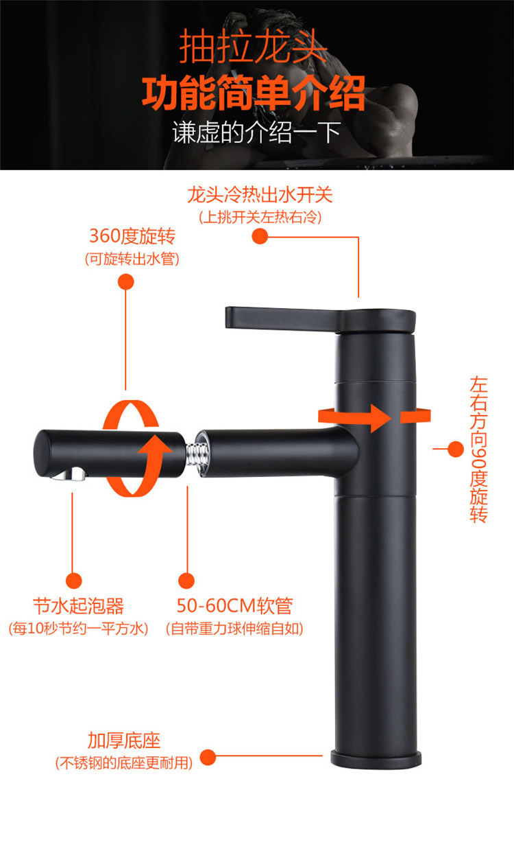 卫欲无限|面盆龙头,-卫欲无限 黑色艺术台上面盆龙头五金套装YT05