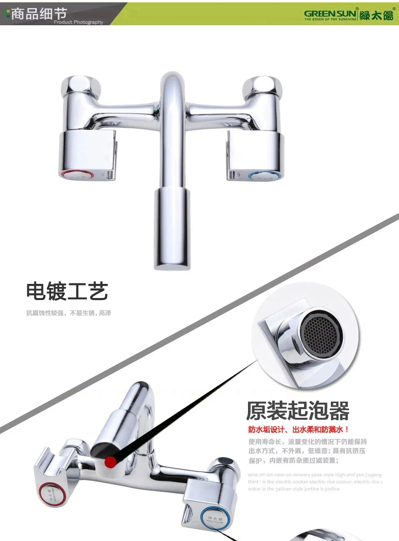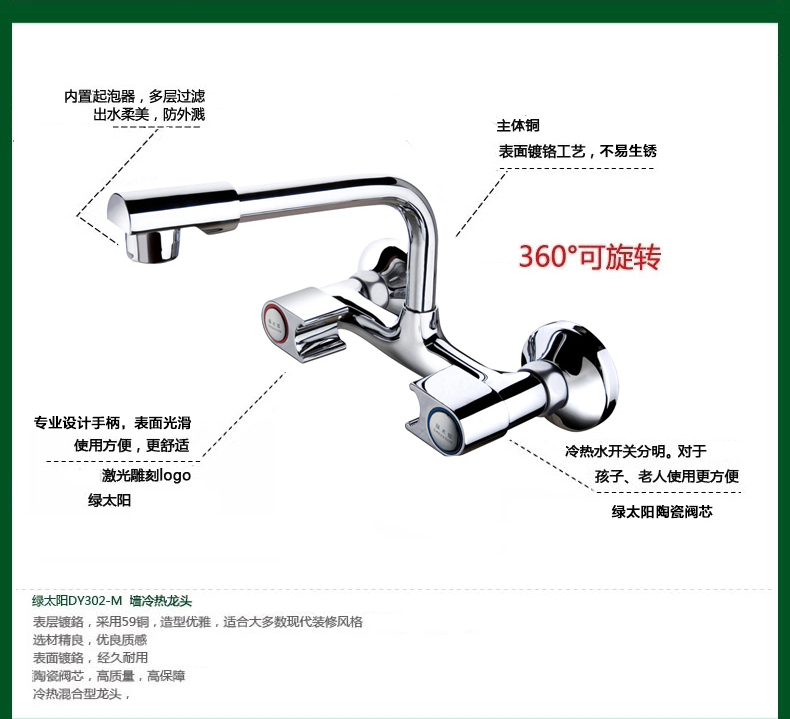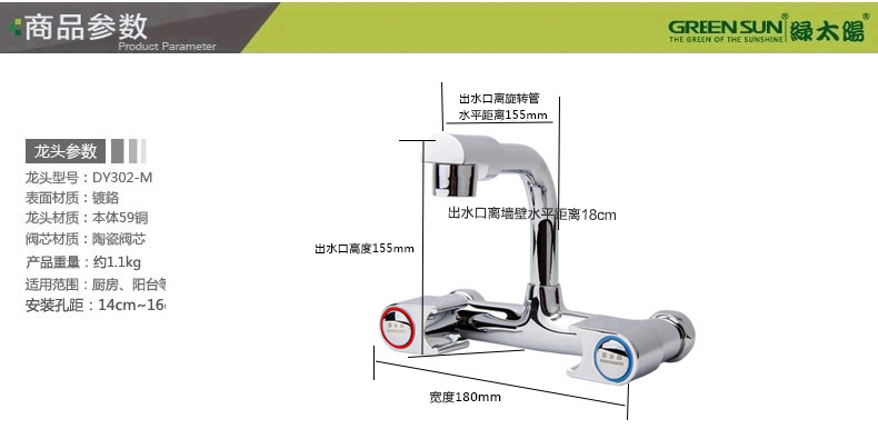 绿太阳|面盆龙头,-绿太阳 墙出水冷热双控厨房龙头DY302-M【包安装】