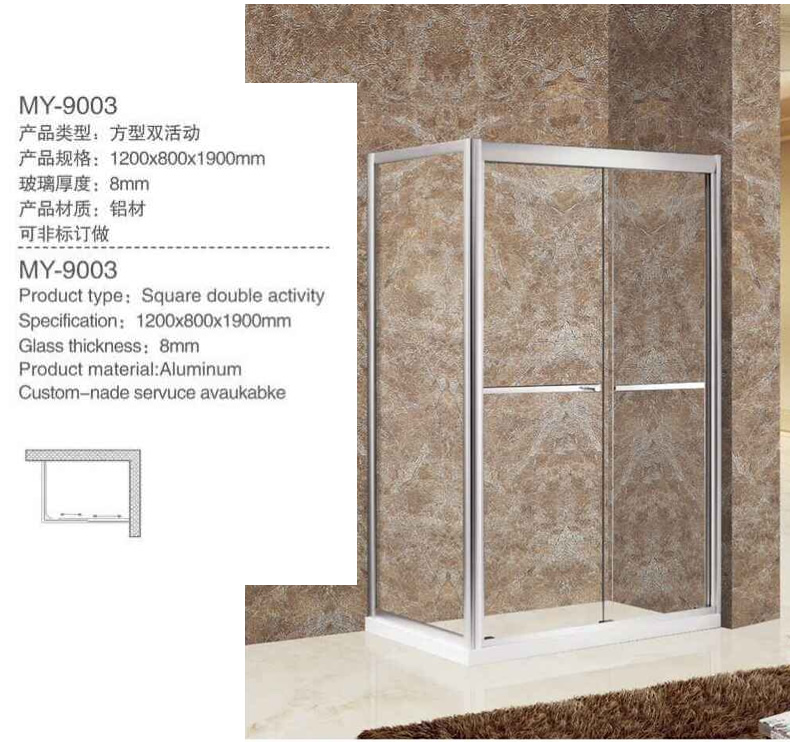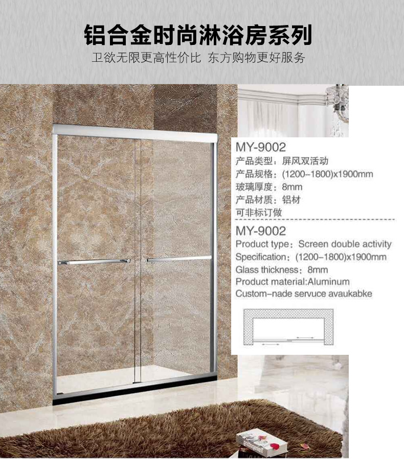 卫欲无限 铝合金时尚玻璃淋浴房定制9002~9005(0.1㎡补订) >