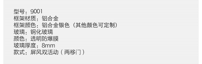 卫欲无限 铝合金时尚玻璃淋浴房定制9001(0.1㎡补订) >